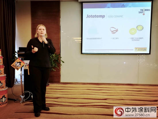 佐敦集团全球石化行业经理Michelle Ystad Eriksen在“石化行业高温环境下的安全防护”技术交流会上讲解佐敦保温层下防腐涂料解决方案